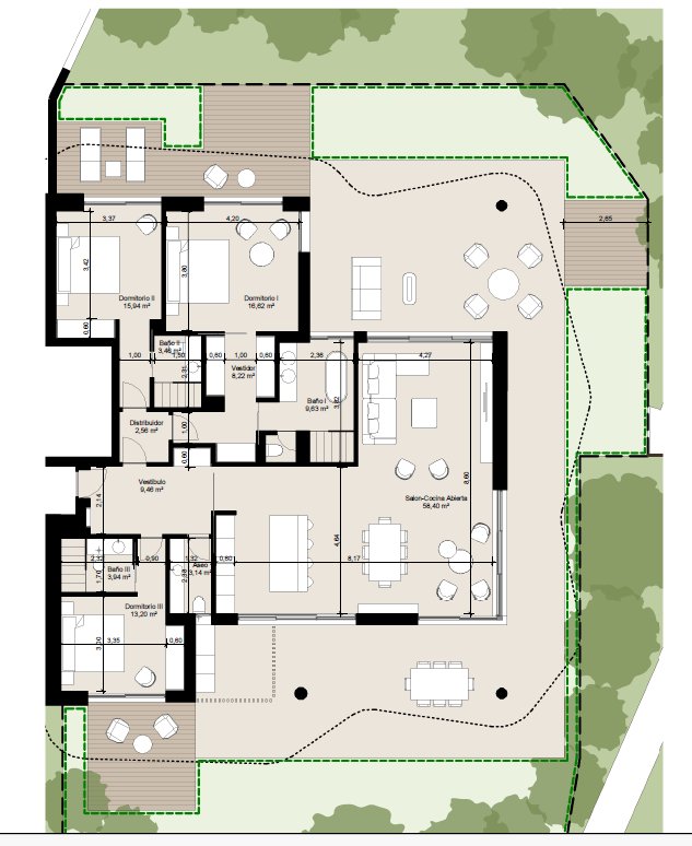 In one of the most privileged corners of the Andalusian coast, a new residential concept has been created that blends contemporary architecture, sustainable design, and an extraordinary collection of amenities. Nestled within lush parkland filled with cork oaks and pine trees, these homes are designed to live in harmony with nature while offering the highest standards of comfort and elegance. The community is completely traffic-free, creating a serene and safe environment where walking, cycling, and enjoying the outdoors become part of everyday life.
