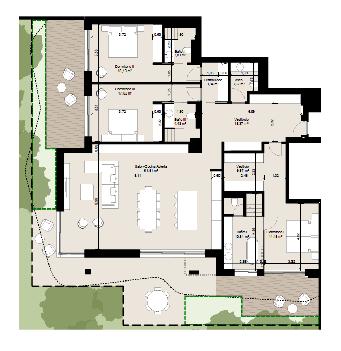 In one of the most privileged corners of the Andalusian coast, a new residential concept has been created that blends contemporary architecture, sustainable design, and an extraordinary collection of amenities. Nestled within lush parkland filled with cork oaks and pine trees, these homes are designed to live in harmony with nature while offering the highest standards of comfort and elegance. The community is completely traffic-free, creating a serene and safe environment where walking, cycling, and enjoying the outdoors become part of everyday life.