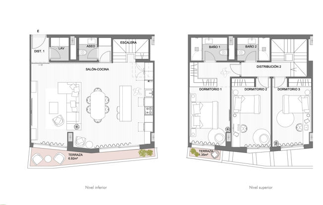 The kitchen and bathrooms feature high-end finishes from globally recognised brands, including Saloni, Roca, Cosentino, Vescom, Dekton, and Grohe. The elegance and simplicity of these premium materials result in a home that is both functional and visually striking, standing out for its sophistication and quality.